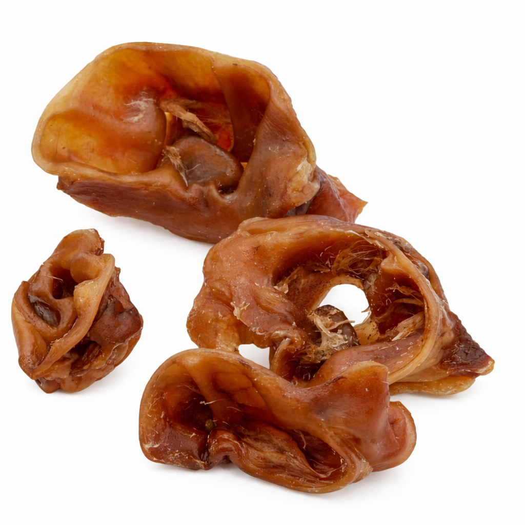 Padiglioni di maiale naturali, senza coloranti o conservanti, ideali per cani con digestione sensibile.
